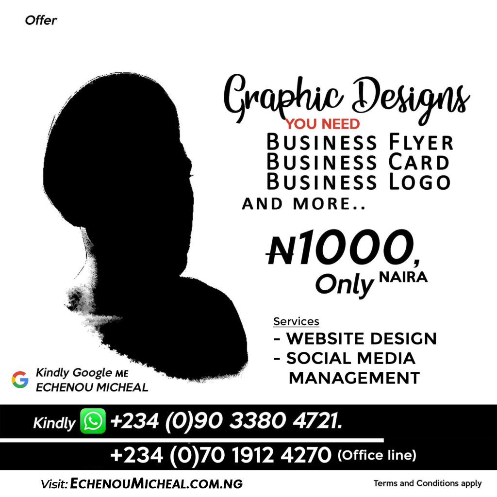 You need Business Graphic designs, Website Designs & Social Media Management, contact: +2349033804721 | +2347019124270